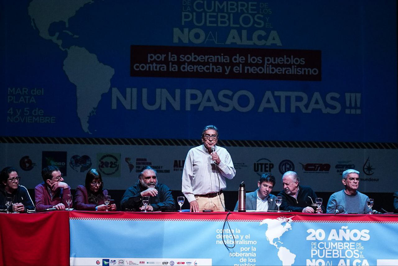 Durante la jornada del miércoles tuvo lugar el acto de cierre. Allí, el Secretario General de la CTA Autónoma, Hugo “Cachorro” Godoy, dijo: “Hace veinte años aquí se enterró el ALCA. Eran tiempos de ofensiva de los movimientos populares, donde era posible alumbrar caminos alternativos que pudieron conjugarse con experiencias de representación institucional como las que expresaban Chávez, Lula, Tabaré, Evo, Kirchner. En ese entonces el imperio quiso doblegarnos con el libre comercio. Como nuestros pueblos no se subordinan, hoy quieren convertir nuestros territorios de paz en zonas de guerra, para doblegarnos, para fragmentarnos, para dividirnos”.