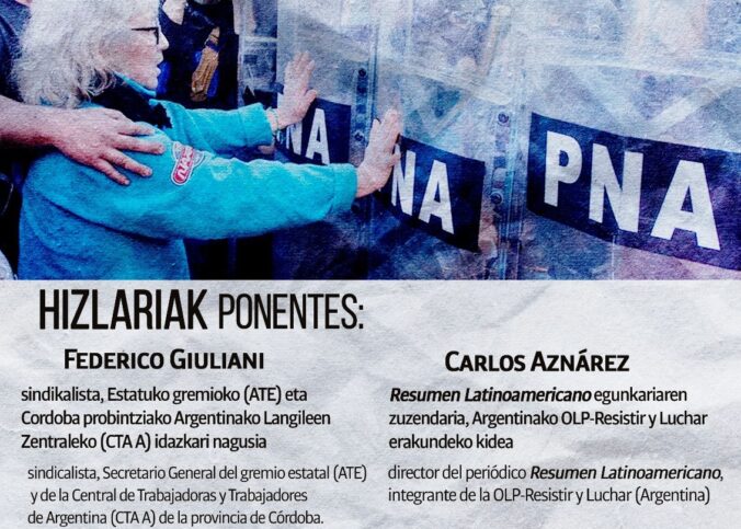 Este miércoles 26 de noviembre, en el País Vasco, el Secretario General de ATE y la CTA Autónoma Córdoba, Federico Giuliani, volverá a participar de una charla-debate junto al director periodístico de Resumen Latinoamericano y militante de la OLP-Resistir y…
