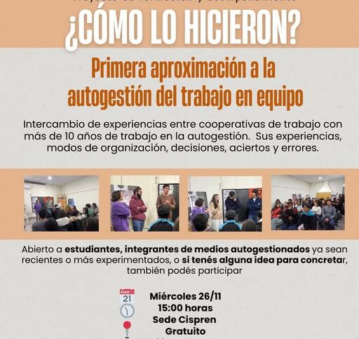 Se viene el segundo encuentro de proyectos de medios de comunicación autogestivos: Trayecto de formación y acompañamiento a los nuevos proyectos comunicacionales. 1er encuentro Miércoles 26 de noviembre. 15:00 horas. Sede; Círculo Sindical de la Prensa y la Comunicación de…