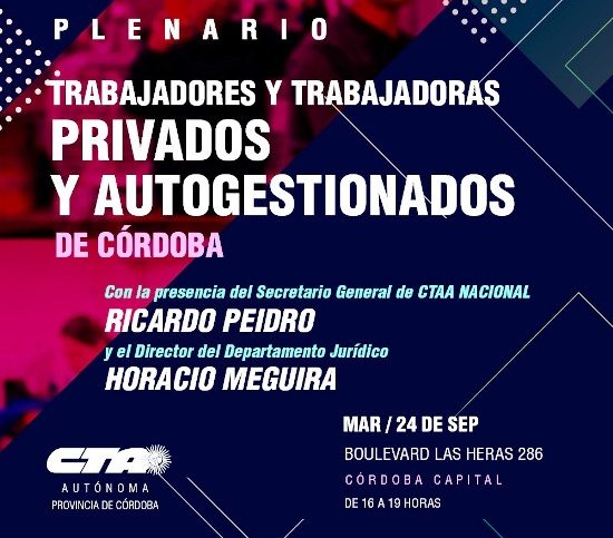Se realiza hoy el Plenario Provincial de Trabajadores Privados y Autogestionados de la CTA-A Córdoba
