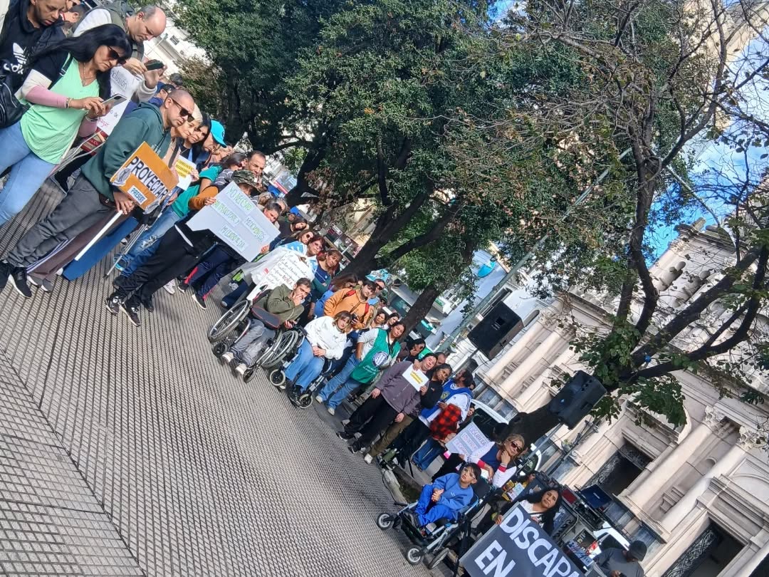 “Ayer el Colectivo de Personas en Situación de Discapacidad que nuclea instituciones, familias, prestadores, transportistas, profesionales y organizaciones, estuvo presente en la Plaza Central, para exigir que el Gobierno cumpla con la Ley de Emergencia en Discapacidad y rechazar enérgicamente el nuevo proyecto de Ley que intenta ingresar el Gobierno Nacional.
