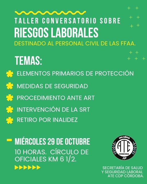 Organiza: Secretaría de Salud y Seguridad Laboral de ATE Córdoba.