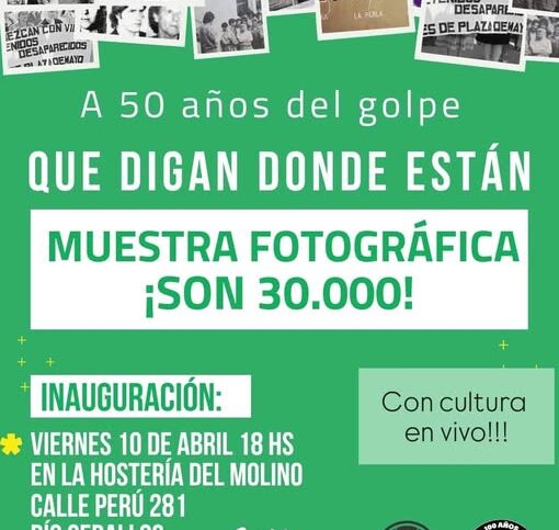 A 50 años del golpe, seguimos gritando ¡Que digan dónde están!. Desde la CTA Autónoma Regional Sierras Chicas, invitamos a toda la comunidad a la inauguración de esta muestra necesaria para mantener viva la Memoria, la Verdad y la Justicia….