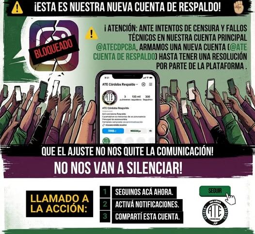 “Compañeros y compañeras: Debido a las recientes restricciones y problemas técnicos que está sufriendo nuestra cuenta oficial, hemos decidido activar esta Cuenta de Respaldo. “En tiempos donde intentan invisibilizar nuestros reclamos y desmantelar el Estado, fortalecer nuestros canales de comunicación…