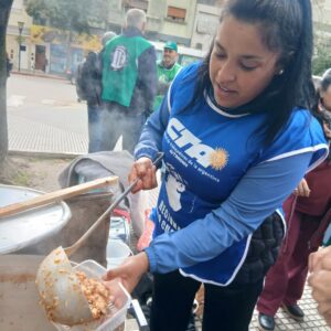 Como parte de la protesta, organizaron una Olla Popular en la Plaza Central. “Entendemos que hoy lo que está atravesando todas las líneas es el hambre”, afirmó Alcoba, y agregó que la situación golpea tanto a los sectores más vulnerables como a los trabajadores registrados: “Incluso en nuestros sectores, donde somos trabajadores formales y asalariados, estamos bajo la línea de pobreza”.