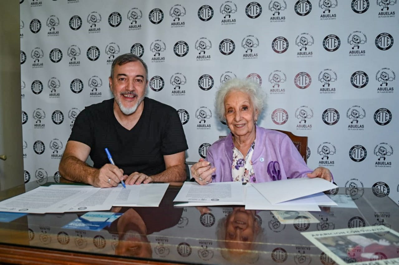 La Asociación Trabajadores del Estado (ATE-CTAA) el 10 de diciembre firmó un convenio de colaboración mutua con la Asociación Abuelas de Plaza de Mayo a 41 años de la recuperación de la Democracia en Argentina y Día Internacional de los Derechos Humanos. Encabezaron la ceremonia el Secretario General del sindicato, Rodolfo Aguiar, y la presidenta del organismo de derechos humanos, Estela de Carlotto.