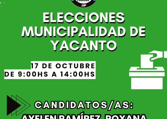 El Consejo Directivo Provincial de la Asociación Trabajadores del Estado (ATE-CTAA) Córdoba, anunció que este viernes 17 de octubre habrá elecciones de delegados en la Municipalidad de Yacanto, en el Valle de Calamuchita. El comicio tendrá lugar en el horario…