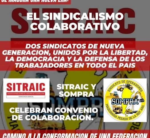 “A la vanguardia del nuevo sindicalismo, basado en la democracia y a libertad sindical, entre el Sindicato de Trabajadores de la Industria de la Construcción y Afines (SITRAIC-CTAA) y el Sindicato de Operadores de Maquinaria Pesada de la República Argentina…