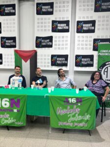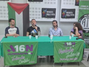 El jueves 9 de octubre en el local de ATE, se realizó el Conversatorio Sindical organizado por la agrupación antiburocrática Alternativa 16N del Gremio de Judiciales de Córdoba. Es la segunda actividad de formación que realiza esta agrupación, en esta oportunidad, en medio del proceso de elección de delegados y delegadas en la Asociación Gremial de Empleados y Empleadas del Poder Judicial de Córdoba (AGEPJ-CGT).