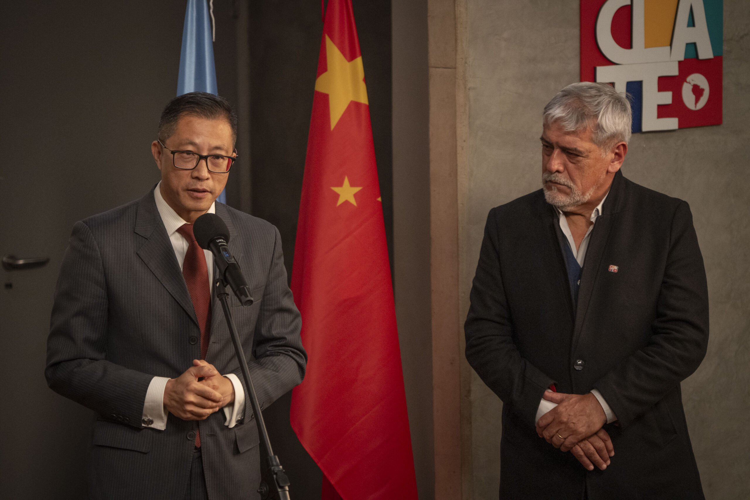 En representación de la Embajada de la República Popular China en Argentina estuvo el ministro consejero Wang Xiaoxu, quien saludó la iniciativa de CLATE y destacó la amistad entre China y Argentina. “Para nosotros es importante el rol del Estado en el desarrollo nacional. Desde el establecimiento de las relaciones diplomáticas entre nuestros dos países, hace más de medio siglo, el avance ha sido a paso firme. China apoya el reclamo de Argentina respecto a Malvinas”, expresó el diplomático chino. Seguido, agregó “el rol que juega el Estado en China tiene dos temas principales, el desarrollo económico y la equidad. Hemos tenido hasta ahora 15 planes quinquenales, que dieron una base sólida para el desarrollo económico. En China sacamos a 800 millones de personas de la pobreza en las últimas décadas. Es algo único en la historia y como ciudadanos chinos nos enorgullecemos de eso».