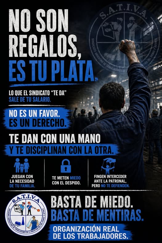 “Frente a esto, la discusión de fondo es clara. No alcanza con denunciar. Es necesario reconstruir una forma de organización donde el trabajador vuelva a ser protagonista, donde los recursos sean transparentes, donde la representación no sea una herramienta de control sino de lucha. Porque los derechos no se agradecen. Se conquistan, se defienden y se ejercen. Y cuando eso ocurre, ya no hay lugar para favores. Hay lugar para dignidad y organización real”, concluye una declaración del Sindicato Argentino de Trabajadores de la Industria del Vidrio y Afines (SATIVA-CTAA).