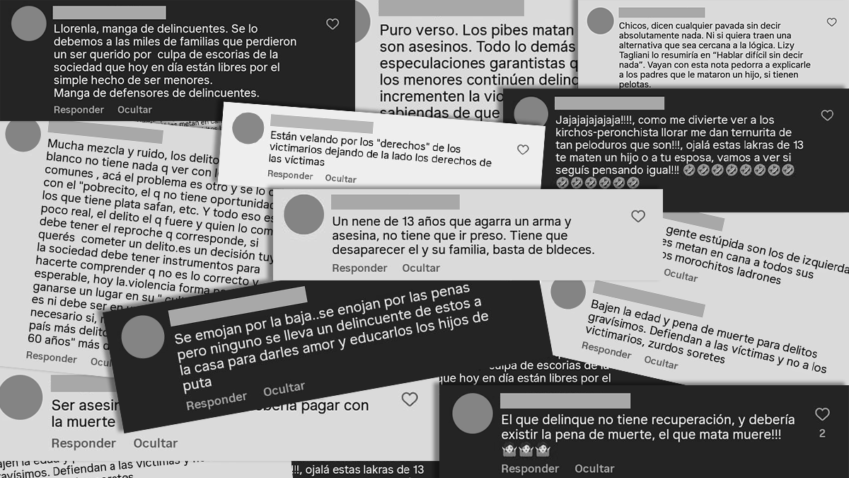 La semana pasada publicamos una nota sobre el proyecto del Gobierno nacional para bajar la edad de punibilidad. En el texto, el abogado Lucas Crisafulli proponía un debate político y jurídico. Los comentarios en las redes sociales, en muchos casos, no fueron una discusión de ideas, sino una catarata de insultos, amenazas y deseos de muerte. Algunos comentarios desearon el asesinato de un hijo a quien pensaba que no debía bajarse la edad; otros pidieron que un niño de 13 años y su familia “desaparezcan”. Nadie se sorprende a esta altura de esa dinámica de las redes sociales, pero queremos detenernos en lo que esos discursos revelan: la centralidad de la venganza, la deshumanización del castigo y la violencia que hoy circula con naturalidad en las redes sociales cuando se habla de delito.