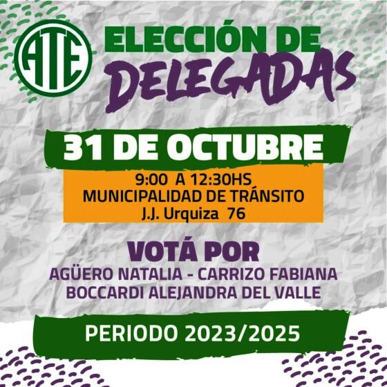 En la oportunidad, la Asociación Trabajadores del Estado (ATE-CTAA) propone como candidatas a las compañeras Fabiana Carrizo, Alejandra Boccardi y Natalia Agüero para que representen a los municipales de Tránsito durante los próximos dos años de mandato.