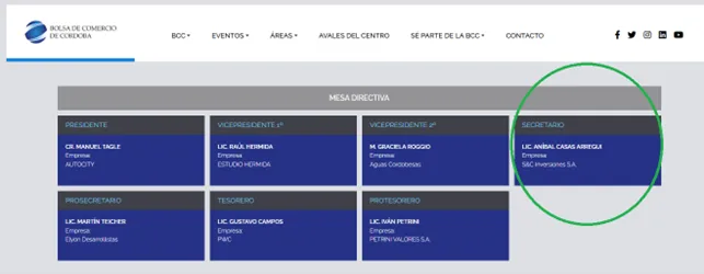 No es para menos, ya que Casas Arregui es a la vez el secretario de la Mesa Directiva de la Bolsa de Comercio de Córdoba, la entidad empresarial más jurásica del territorio mediterráneo. Encabezado por el eterno Manuel Tagle, el mejor amigo cordobés del expresidente Mauricio Macri y del presidente Javier Milei, y donde participan los empresarios más poderosos de la provincia.