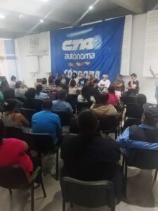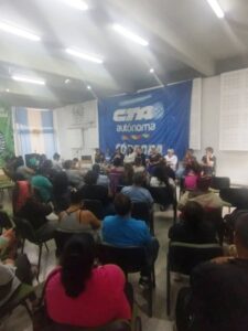 Lo aseveró Federico Giuliani, Secretario General de la CTA Autónoma Córdoba, quien presidió este jueves junto a la Secretaria Adjunta de la Central, Silvia Alcoba, el Plenario conjunto que realizaron la Federación Nacional Territorial (FeNaT-CTAA) y el Sindicato de Mujeres Trabajadoras Sexuales Autónoma (AMMAR Córdoba-CTAA) en la sede gremial de Entre Ríos 450. Debate, organización y construcción colectiva. Estuvieron presentes dirigentes de gremios privados como el Sindicato de Entidades Bancarias y Financieras (SITEBA), Sindicato Argentino de Trabajadores de la Industria del Vidrio y Afines (SATIVA) y la Unión de Conductores de la República Argentina (UCRA).