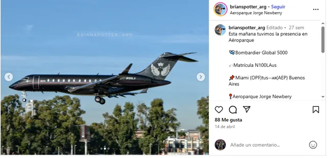 Según revisó StripteasedelPoder.com, el lujoso Bombardier Global 5000 de Scatturice cambió de matrícula justo a comienzos de ese mismo mes de abril. De hecho, el viaje de Bennet a Buenos Aires fue el primer vuelo del avión por fuera de EEUU con la flamante chapa, cuya N avisa que está registrado en los EEUU, con la consideración que eso merece en los aeropuertos del mundo.