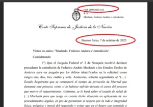 Posteriormente, el 29 de noviembre 2024, Oneto le dio otra vuelta de tuerca al asunto, con una presentación que enteraba a los ahora tres supremos, que había un fallo en EEUU que podía cambiar la situación de su defendido. Pero recién el 21 de agosto pasado, nueve meses después, como si estuvieran pariendo un hijo, y cuando la situación de Machado comenzaba a hacer ruido en la opinión pública, los tres supremos le ordenaron al juez Villanueva de Neuquén, qué vía la Cancillería pidiera a la justicia estadounidense que informara al respecto.