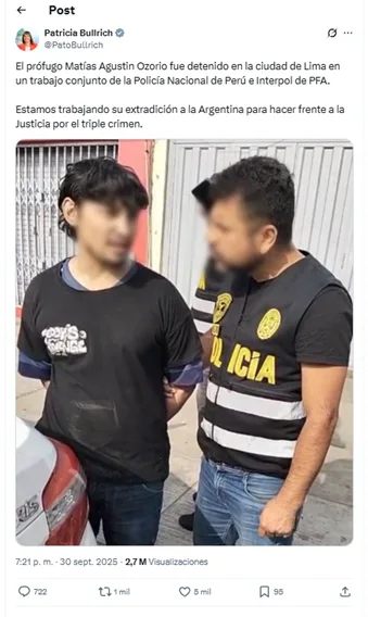 Además curiosamente, la ministra Bullrich anticipo a destiempo la detención de Matías Osorio en Perú. Como para ayudar a que “Pequeño J” se escabullera de la trampa que le estaba tendiendo la policía de allí, usando a Osorio como señuelo. Y además de emplear la cuestión como un argumento electoral, cuestionando la seguridad en el conurbano, de entrada procuró negar que su epicentro estuviera en la CABA bajo su cargo, diciendo que eran versiones sin fundamento.
