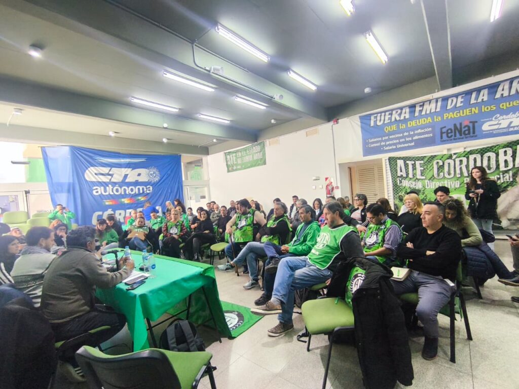 Con la participación masiva de delegados y delegadas de organismos nacionales en Córdoba se llevó adelante el miércoles un Plenario General con el fin de abordar la realidad de cada sector y resolver la realización de una medida de fuerza conjunta, en el marco del plan de lucha que ATE está protagonizando en contra del plan de ajuste y destrucción del Estado que impone cruelmente el gobierno de Javier Milei.