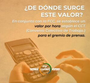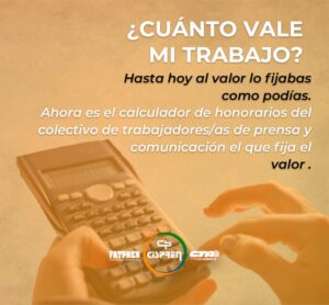 “Ahora podés calcular tus honorarios por trabajos de periodismo y comunicación. El calculador de honorarios es el resultado de un trabajo conjunto entre el Círculo Sindical de la Prensa y la Comunicación de Córdoba (Cispren-CTAA) y la Facultad de Ciencias de la Comunicación de la Universidad Nacional de Córdoba (UNC), a través de su Secretaría de Graduados.